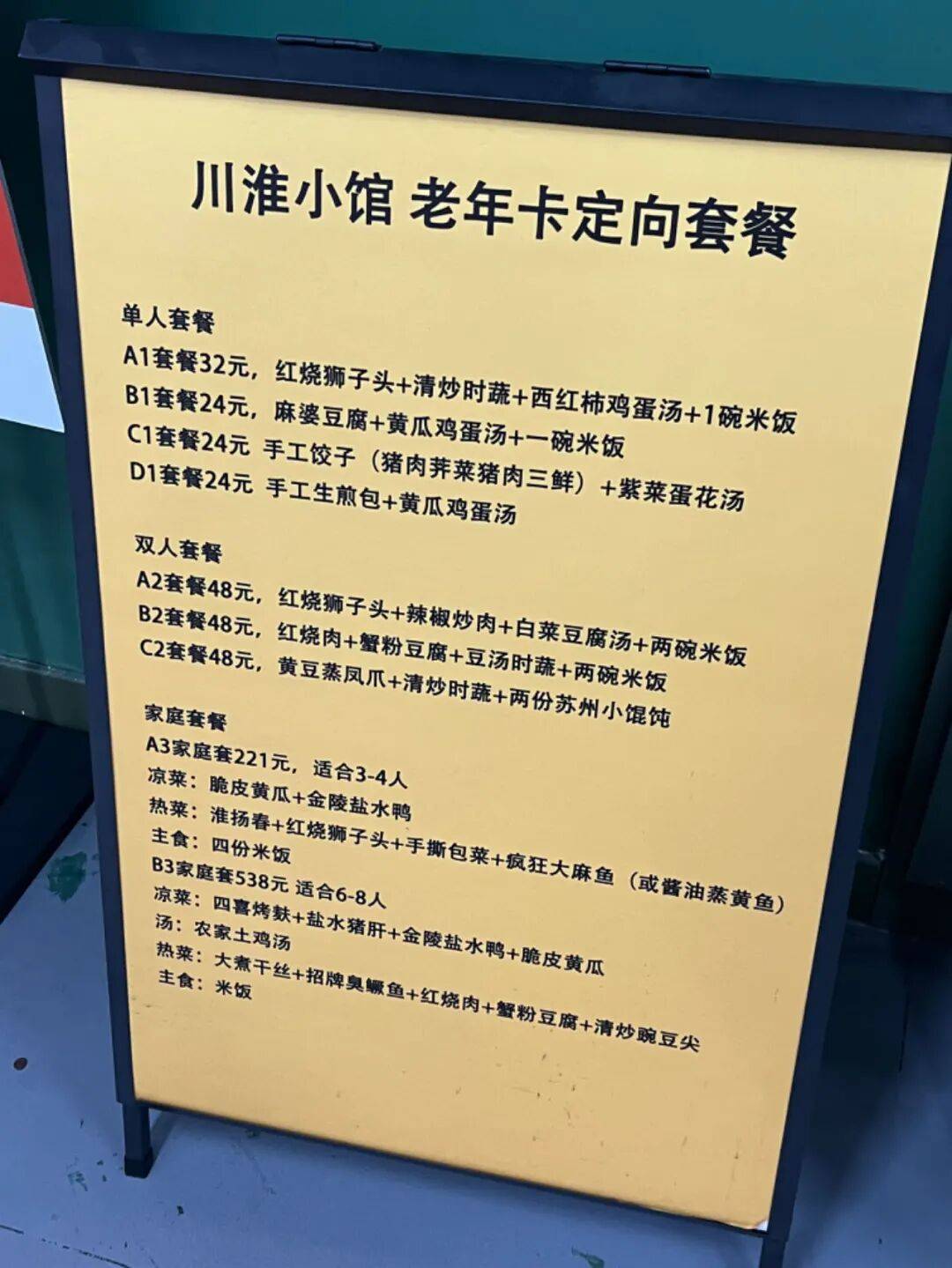 国融国际商圈3层的帮餐点川淮小馆,为老年人带来了更多元的口胃选择。该店特地面向老年人群推出了4款单人套餐、3款双人套餐和2款家庭套餐,餐品既有招牌臭鳜鱼、春、金陵盐水鸭等特色菜,也有手工水饺、馄饨、红烧肉等家常甘旨。